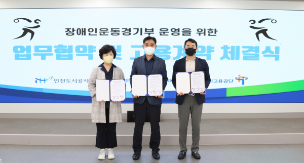 이 날 협약식에는 iH 기획조정실장, 인천시장애인체육회 사무처장, 장애인고용공단 취업지원부장, 인천혜광학교 관계자가 참석했다.