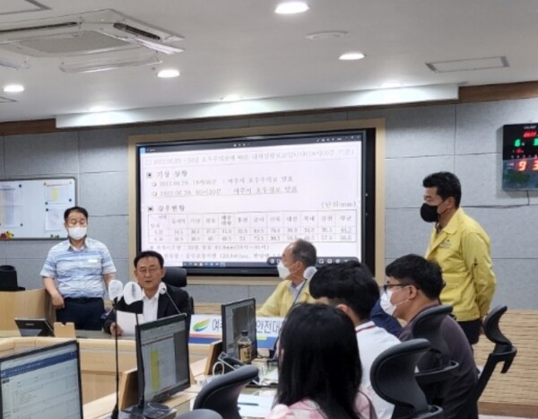 이날 이충우당선인은 “ 4대강 사업이후 대규모 피해나 침수지역이 없으나 하리 배수펌프장등 시설물 점검을 철저히 해 시민이 안전하게 일상생활을 할수 있도록 최선을 다하고 재해대책본부를 선재적으로 가동해 상황관리를 철저히 하며 재해복구 상황에 대해 시민들이 알수있도록 홍보에도 힘쓸 것”을 강조 하면서 “과거 피해지역을 중심으로 2차 피해가 없도록 사전대비에 철저를 다해 달라”고 당부했다