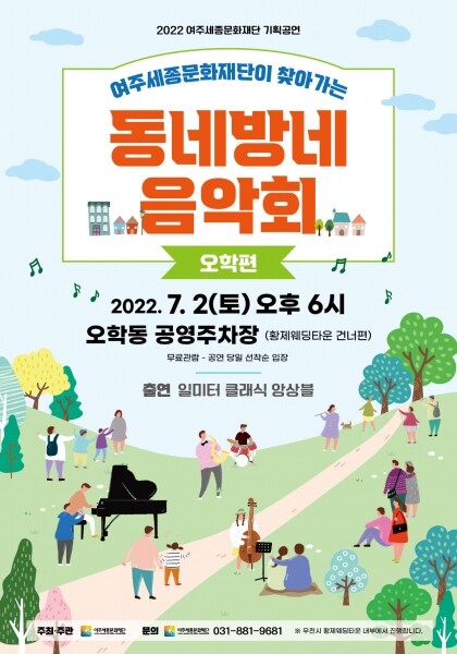 2018년부터 매년 읍면동 각지에서 남녀노소 모두가 즐길 수 있도록 편안한 프로그램으로 지역민을 만났던 여주세종문화재단의 ‘동네방네 음악회’는 올해, 오학동에서 해설이 있는 클래식 음악회로 문을 연다.