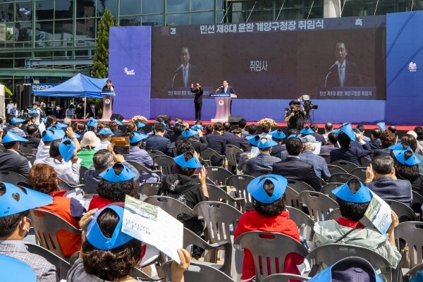 윤환 계양구청장은 취임사를 통해 “꿈이 있는 변화의 도시, 비상하는 계양을 만들기 위해 계획된 사업들을 차질 없이 추진하며 새로운 계양의 시대를 열어갈 것”이라며 “항상 구민이 주인임을 잊지 않고 겸손하고 열린 마음으로 다양하게 소통하며 우리 구민들이 계양에서 산다는 것에 큰 자부심을 느낄 수 있도록 혼신의 노력을 다하겠다”고 포부를 밝혔다.