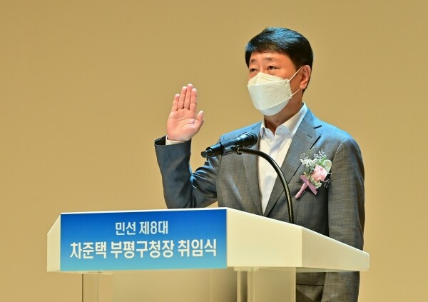 이어 차준택 구청장의 취임선서 후 김상섭 부평구 부구청장이 윤석열 대통령의 축하메시지를 대독했다.