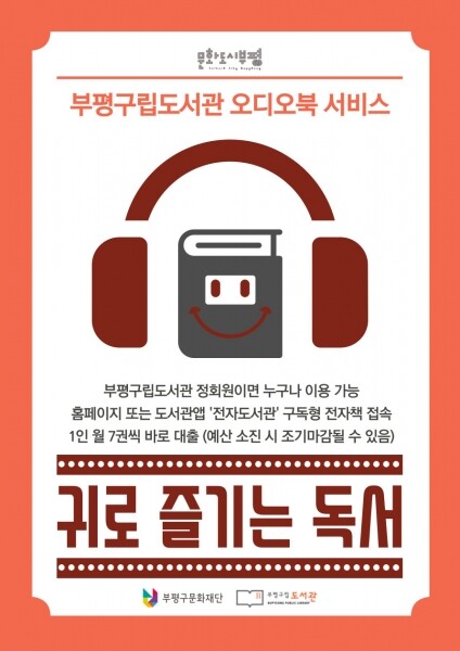배창섭 부평구립도서관 본부장은 “언제 어디서나 공간과 시간에 제약받지 않는 책 읽기를 위해 다양한 서비스를 제공하는 데 부평구립도서관이 앞장설 것”이라며 “오디오북을 통해 생활 속 독서가 더욱 즐거워질 수 있기를 바란다”고 말했다.