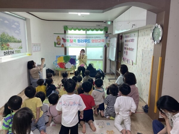 컬러푸드 영양교육은 아이들이 편식하는 채소를 친숙하게 느낄 수 있도록 전문 영양강사가 시설을 방문해 알록달록 컬러푸드 채소를 소개하고 색상에 따른 효능을 교육하는 프로그램이다.