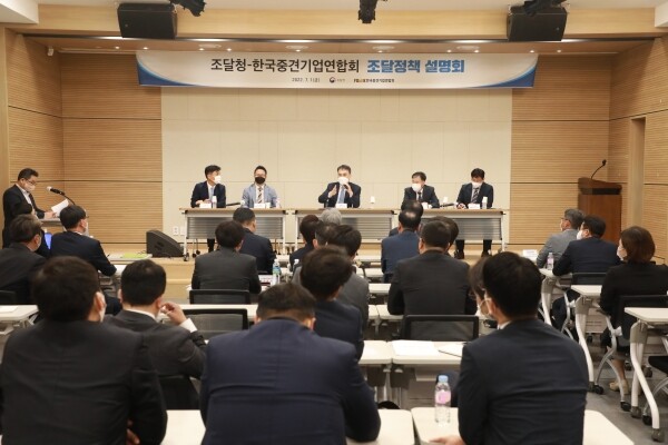 금일 행사에서는 조달청이 새 정부 공공조달 정책방향을 설명한 이후 참석자들이 중견기업의 공공조달 관련 애로 및 건의사항에 대해 자유롭게 논의하는 시간을 가졌다.