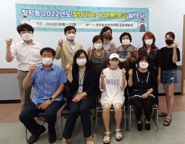 이번 발대식에는 주민자치위원 및 청학동장, 봉사단 등 14명이 참석했으며 봉사단은 같은 날, 신청 및 추천을 통해 선정한 지역 내 거동이 불편한 저소득층 주민 13명을 대상으로 커트, 퍼머 등의 이·미용을 실시했다.