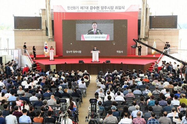 강수현 시장은 취임사를 통해 “이번 선거과정에서 우리 양주시가 직면한 각 분야의 현안에 대해 시민 모두가 얼마나 간절하게 새로운 변화의 바람을 원하는지 확인했다”며 “이제 양주는 대도약의 새로운 변화를 이루어내야 한다.