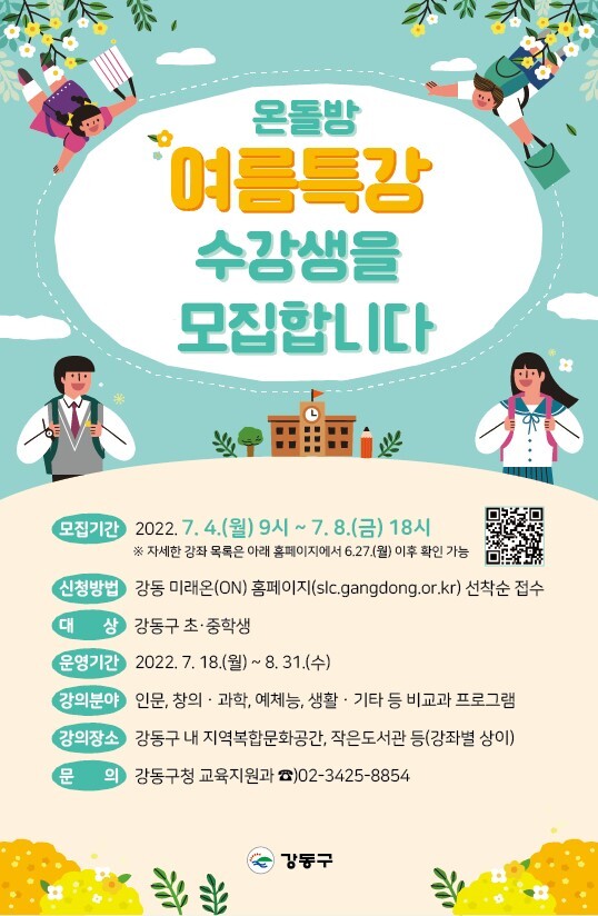 수강을 원하는 초·중학생은 7월 4일 9시부터 강동 미래온 홈페이지를 통해 신청하면 된다.