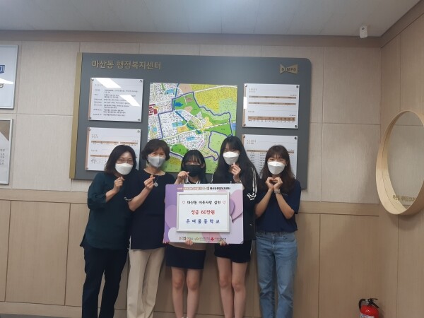 진혜경 마산동장은 “나눔의 마음을 알려주시는 선생님과 그 가르침을 실천하는 학생들의 모습이 참으로 멋지고 자랑스럽다”고 말하며 “기부하신 성금은 마산동에 도움이 필요한 분들을 위해 소중히 사용하겠다”고 감사의 뜻을 전했다.