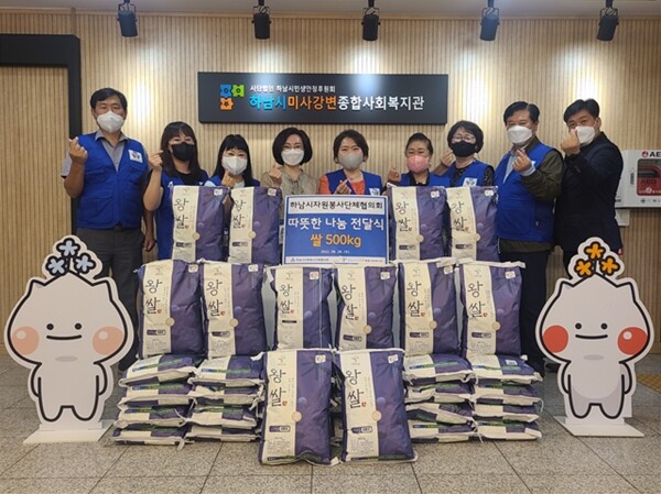 조혜연 관장은 ”관내 취약계층 지원을 위해 언제라도 발 벗고 앞장서 도와주시는 하남시자원봉사단체협의회와 김춘자 회장님, 이 자리에 함께 해주시는 모든 회장님들께 진심으로 감사드립니다“라며 ”전해주신 백미는 관내 취약계층 대상자 중 꼭 필요한 50분께 소중하게 전달하도록 한다“라고 말했다.