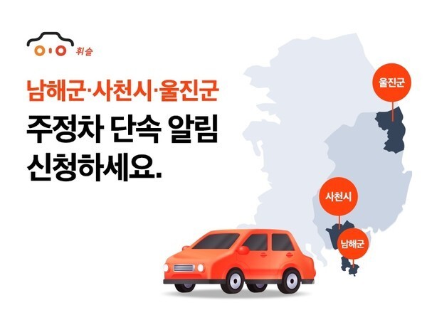 [뉴스써치] 스마트한 운전자를 위한 통합 주정차 단속 사전 알림 앱 ‘휘슬(Whistle)’이 경상남도 남해군, 사천시, 경상북도 울진군에 서비스를 확대 시행했다고 밝혔다.