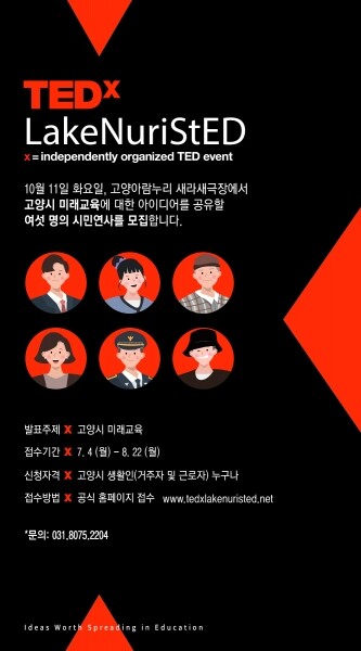 TED의 라이선스를 받아 독립적으로 조직된 이번 행사에서 ‘고양시 미래교육’을 주제로 학생 및 시민학습자, 교·강사 등 고양시의 다양한 교육 주체들이 시민연사와 초청연사로 참여해 발표할 예정이다.