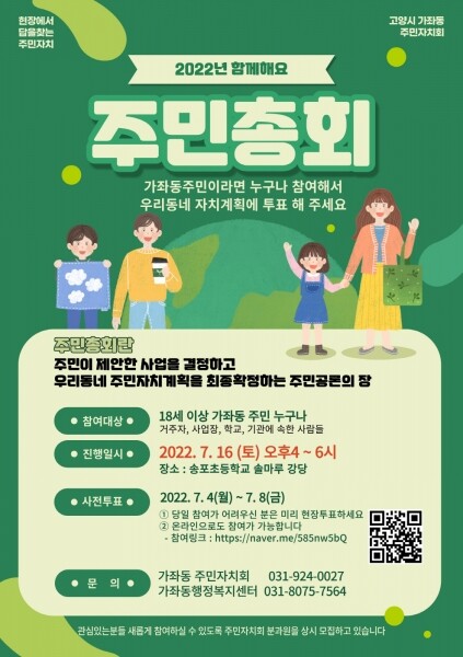 7월 4일부터 8일까지 5일간 진행되는 온라인 사전투표는 홍보전단지의 QR코드 혹은 참여링크를 통해 가능하며 현장투표는 가좌동 행정복지센터와 가좌동 왕마트 등에서 진행된다.