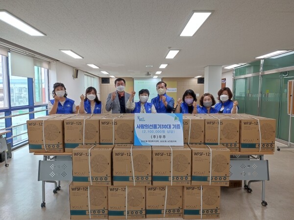 ㈜우주는 선풍기, 난로 등 계절 상품을 제조, 유통하는 회사로 매년 관내 저소득 지역주민의 건강한 여름나기를 위해 도움을 주고 있는 착한기업이다.
