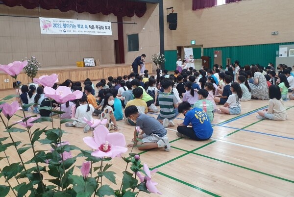 이전에는 학급별로 순회 교육해오던 것을 지난해부터 전교생이 참여하는 학교별 무궁화 축제로 진행하고 있다.