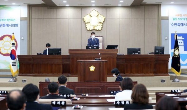 이어 의회는 개원식을 열고 이재준 수원특례시장, 시 간부공무원 등이 참석한 가운데 의원선서 개원사 등의 순서로 진행했다.