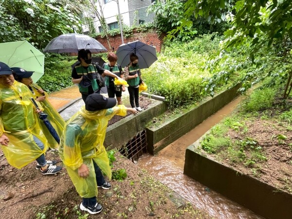 폭우에도 불구하고 20여명의 여성민방위대원은 불광천 일대, 앵봉산 생태공원, 신사1동 및 덕산중학교 주변을 찾아 두루 살폈다.