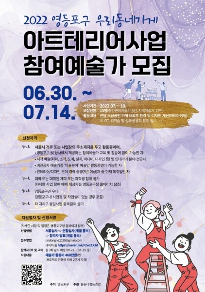 최호권 영등포구청장은 “아트테리어 사업은 소상공인과 지역 예술가가 서로 상생 발전할 수 있는 기회”며 “재능을 마음껏 발휘해 골목상권에 활력을 불어넣어 줄 역량 있는 지역 예술가들의 많은 관심과 참여를 바란다”고 전했다.