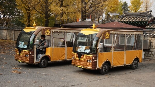행주관람차는 행주산성 내를 순환하는 2대의 전기차로 휠체어 이용객도 탑승할 수 있다.