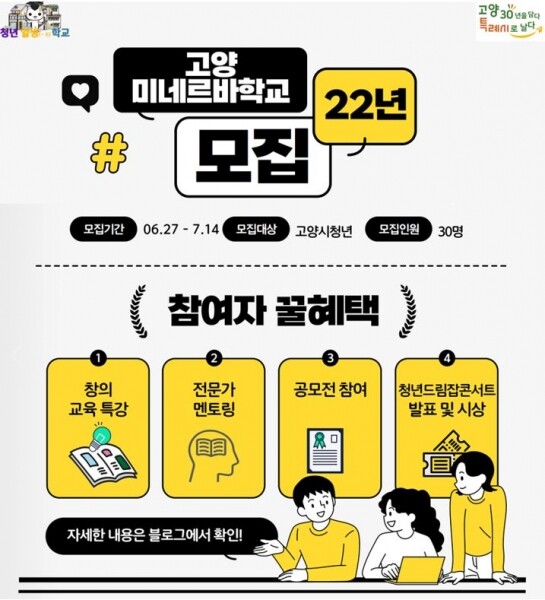 참여 신청은 고양시 통합일자리센터 블로그에서 7월 14일까지 할 수 있다.