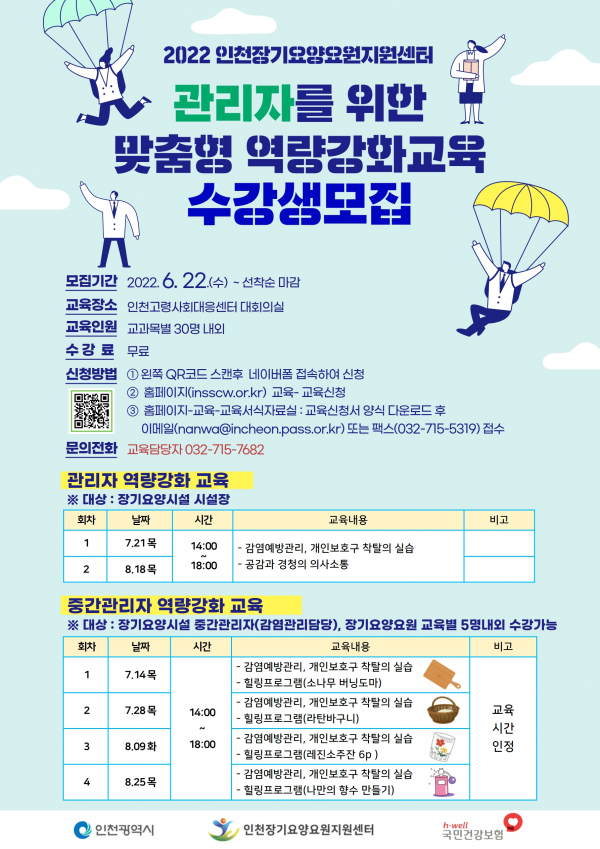 감염예방관리교육은 인천감염병관리지원단이, 힐링프로그램은 건보공단 경인본부가 맡는다.