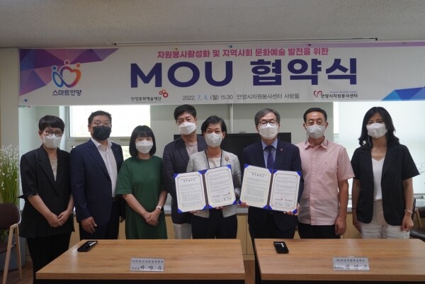 안양시 자원봉사센터에서 진행된 협약식에는 안양문화예술재단 박인옥 대표이사와 안양시 자원봉사센터 박양숙 센터장, 안양시 관계부서 직원 등 10여명이 참석했다.