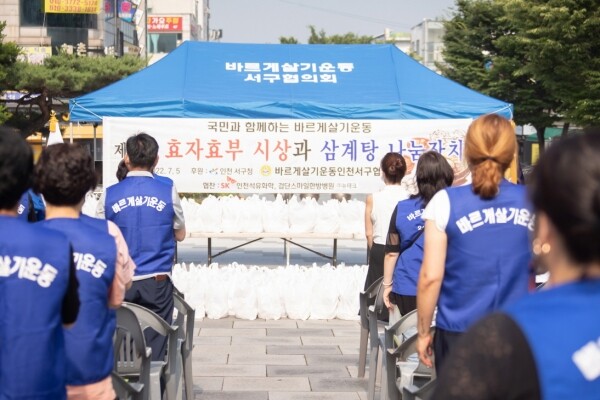 박양범 서구협의회 회장은 “계속 코로나로 인해 잔치를 열지 못해 아쉽지만 어르신들을 공경하느 마음을 담아 삼계탕을 전달할 수 있어 기쁘다”며 “아울러 효자·효부상을 수상하신 분들에게도 감사와 축하의 말씀을 드린다”고 말했다.
