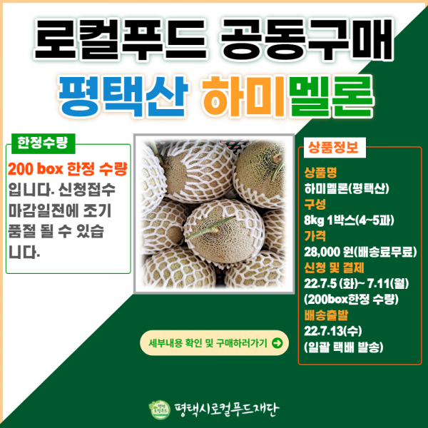 재단은 지난해 평택산 하미메론 공동구매를 통해 1,000만원어치를 팔았는데, 1차 판매분의 조기품절로 인해 2차 공동구매를 추가로 진행했을 정도로 인기가 높았다.
