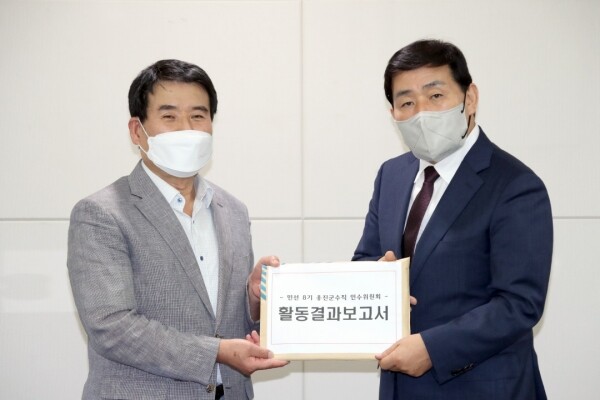 이날 인수위원회가 전달한‘민선 8기 옹진군수직 인수위원회 활동결과보고서’에는 각 부서별 주요업무 계획에대한 검토의견과 민선 8기 총 113개의 공약에대한 인수위원회의 최종의견을 담고 있다.