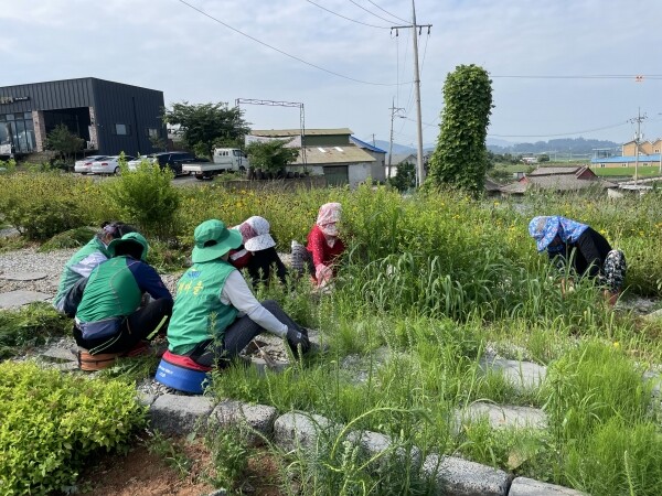 폭염속 무더운 날씨에도 불구하고 부녀회원들은 이른 아침부터 모여 ‘함께 만드는 아름다운 양도면’을 목표로 인산2리 일원 가로화단의 잡초를 제거하고 버려진 쓰레기를 수거했다.