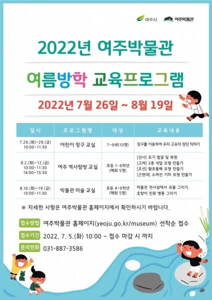 참가 신청은 여주박물관 홈페이지를 통해 7월 5일부터 접수하며 기타 자세한 사항은 홈페이지를 참고하거나 전화로 문의하면 안내 받을 수 있다.
