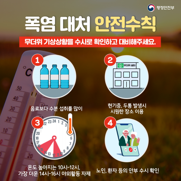 아울러 폭염 노출 빈도가 높은 건설현장과 논·밭 등의 야외작업자에 대한 온열질환 피해 예방을 위한 보호대책도 추진한다.