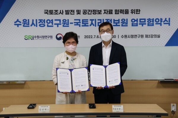 협약식에는 양 기관 원장을 비롯해 공간정보 데이터를 활용·관리하는 최석환 수원시정연구원 도시공간연구실장과 김용옥 국토지리정보원 국토조사과장 등 관계자들이 참석했다.
