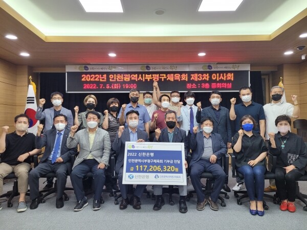 이날 기부금 전달식에는 권동철 부평구 체육회장과 공태귀 신한은행 부평구청지점장, 구 체육회 임원 20여명이 참석했다.