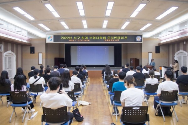서구는 6일 오전 하계 부업대학생 오리엔테이션을 열어 근무내용, 근무 중 유의할 사항 등 사전교육을 진행했다.