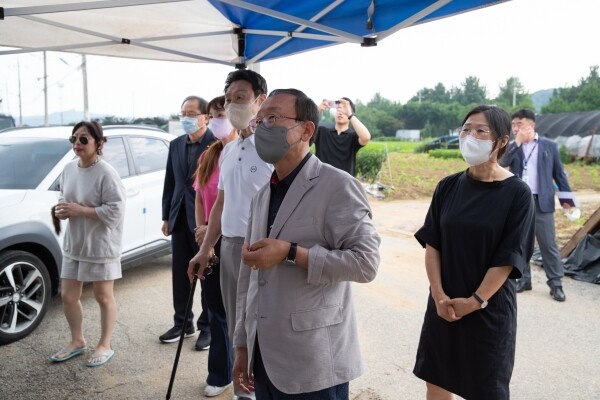 김 군수는 농사일을 돕고 마을 환경정비에 한창인 학생들을 격려하고 덕담을 나눴다.