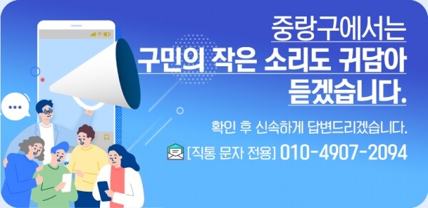 중랑구는 주민들이 고충 및 건의사항을 구청장에게 직접 전달할 수 있도록 구청장 직통 문자메시지 전용 휴대전화를 개설해 이달부터 운영한다.
