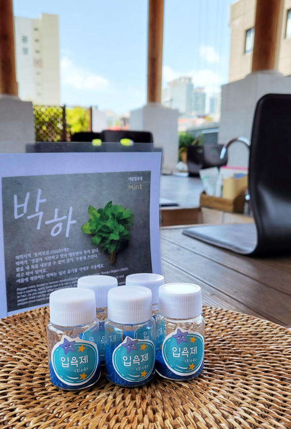 시원한 물에 청량감을 주는 박하 족욕제를 풀어 더위를 잊게 한다.