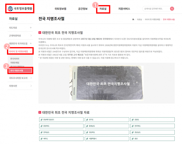 이번에 공개되는 지명조사철 원문의 모든 내용은 국토지리정보원이 운영하는 국토정보플랫폼에서 누구나 손쉽게 내려받기해 활용할 수 있다.