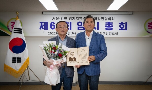 이날 이 조합장은 서울·인천·경기지역 산림조합 발전협의회 임시총회에서 앞서 김덕현 연천군수를 초청해 김 군수의 얼굴이 새겨진 목판 취임 축하 기념패를 전달했다.