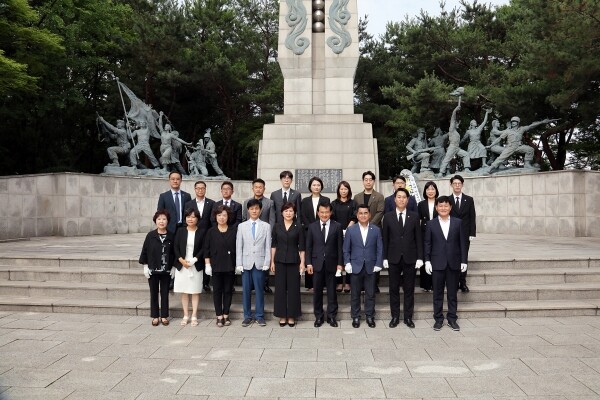 이날 참배에는 최병일 의장, 음경택 부의장, 윤해동 더불어민주당 교섭단체 대표의원, 김경숙 국민의힘 교섭단체 대표의원 등 20인의 의원이 함께해 순국선열 및 호국영령들의 애국정신을 가슴에 새기며 앞으로 4년간의 의정활동에 대한 새로운 각오를 다졌다.