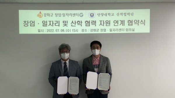 이번 업무협약을 통해 강화군 창업·일자리센터와 안양대학교 산학협력단은 상호 자원 연계를 통한 산학 협력 및 창업·일자리창출 협업을 위한 상호 협력 체계를 구축했다.