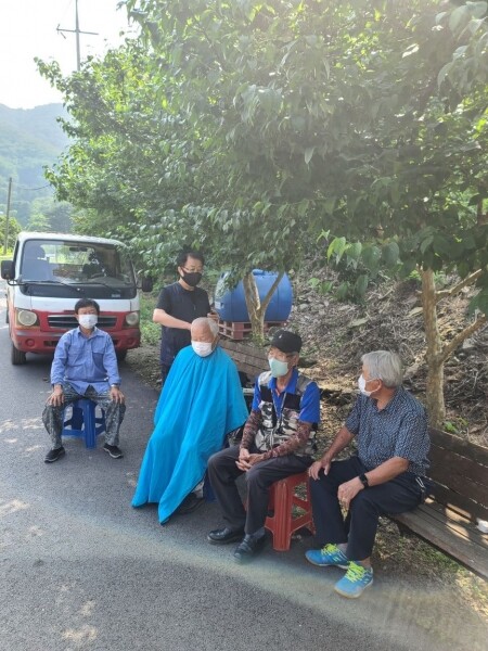 이번 봉사는 걸산동 마을회관 앞에서 코로나19 방역수칙 준수 하에 진행됐으며 폭염으로 지친 어르신들의 머리를 시원하게 다듬어 드렸다.