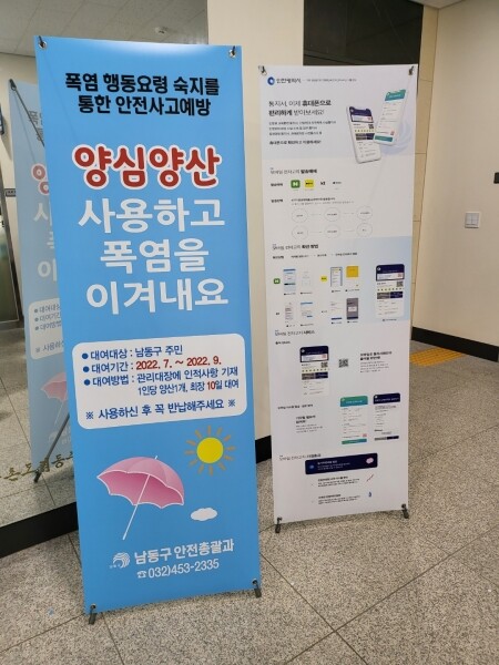 이를 위해 구는 20개 동 행정복지센터에 ‘양심 양산 대여소’를 설치하고 400개의 양산을 비치했다.