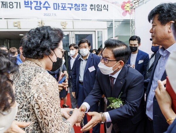 이날 취임식에는 박강수 신임 마포구청장 취임을 축하하는 각계각층 주민을 비롯해 오세훈 서울시장, 더불어민주당 노웅래 국회의원 및 정청래 국회의원, 김성동 국민의힘 마포을 당협위원장, 오현주 정의당 마포지역위원장 등이 모여 새로운 민선 8기 마포구의 출발을 축하했다.