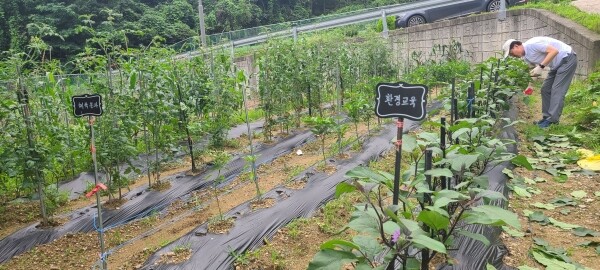 내손1동 주민자치위원회 자체사업의 일환으로 지난 4월부터 조성한 텃밭을 4개 분과의 영역으로 나눠 각각 가지, 토마토, 고구마, 고추를 심고 여분의 땅에는 옥수수를 공동으로 식재했다.