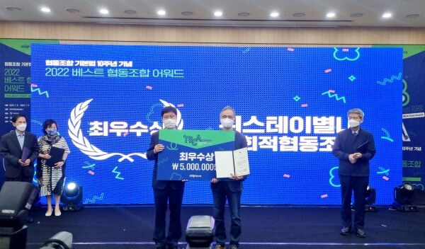 ‘베스트 협동조합 어워드’는 ‘협동조합 기본법’ 제정 10주년을 기념해 기획재정부와 한국사회적기업진흥원이 공동으로 주관해 총 7개 분야에서 활동하는 협동조합들을 대상으로 우리나라를 대표하는 ‘베스트 협동조합’을 선정하는 대회다.
