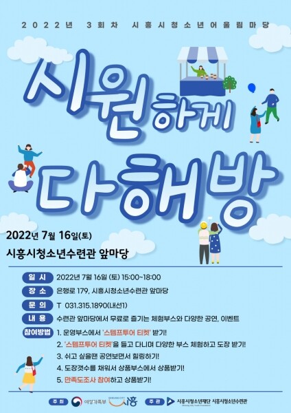 청소년들에게 시원함을 선사할 이번 어울림마당은 시흥시 청소년들이 직접 기획하고 운영하는 체험부스존과 끼와 재능을 보여줄 수 있는 버스킹존 운영으로 즐거움을 더할 것으로 기대를 모은다.