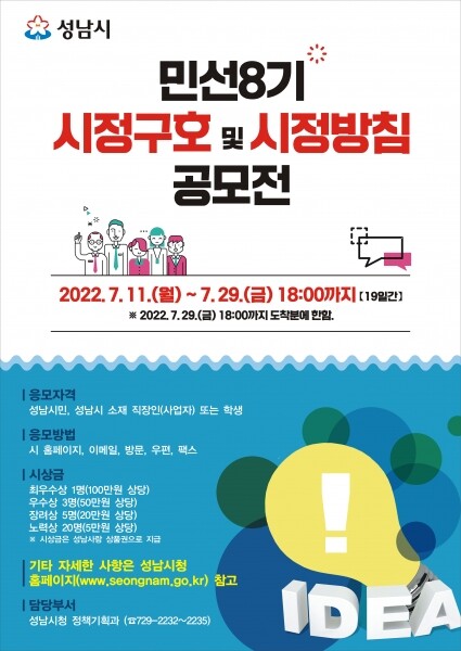 시는 오는 8월 29일까지 당선작을 선정해 모두 29명에 450만원의 시상금을 성남사랑상품권으로 준다.
