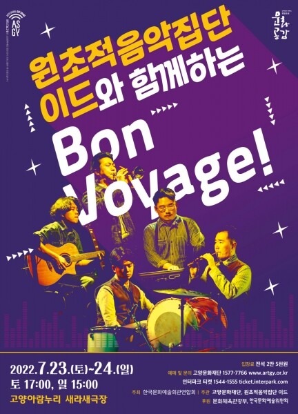 ‘원초적음악집단 이드와 함께하는 Bon Voyage’ 공연은 2022년 문예회관과 함께하는 방방곡곡 문화공감 민간예술단체 우수공연 프로그램 선정작으로 한국문화예술회관연합회가 주최하고 고양문화재단과 원초적음악집단 이드가 주관, 문화체육관광부와 한국문화예술위원회가 후원해 사업비 일부를 문예진흥기금으로 지원받아 진행한다.