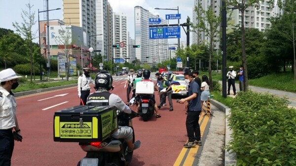 더위가 본격화되면서 창문을 열어두고 생활하는 주민들이 오토바이 소음으로 인한 불편 민원을 해소하고 교통사고 예방을 위해 주말에 무더운 날씨에도 불구하고 집중 단속을 실시했다.